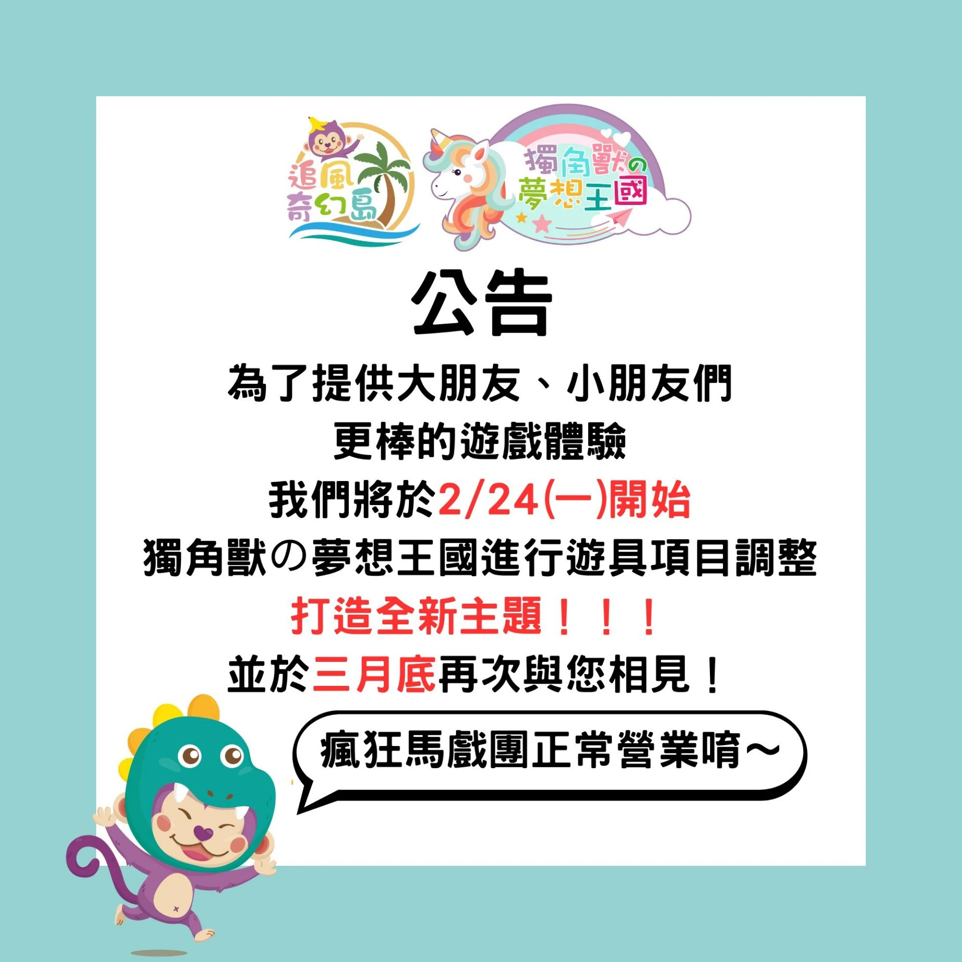 造成您的不便,敬請見諒,也期待與您在奇幻島碰面~ 2025.05.15