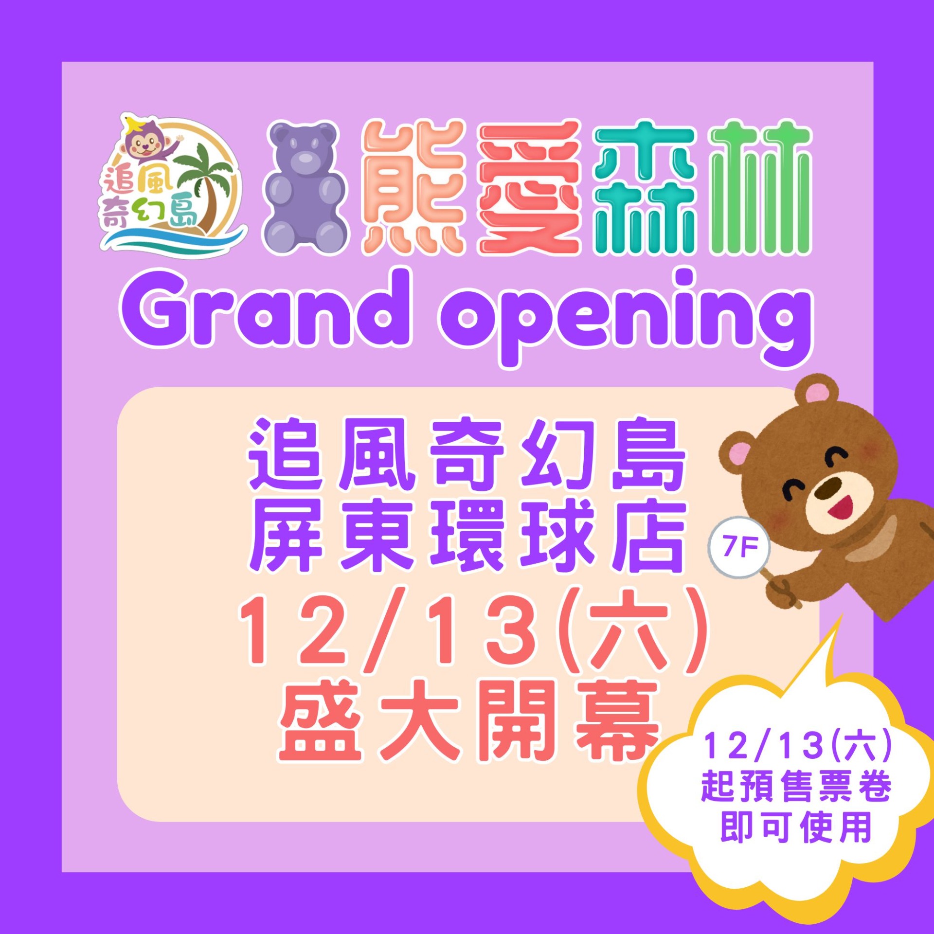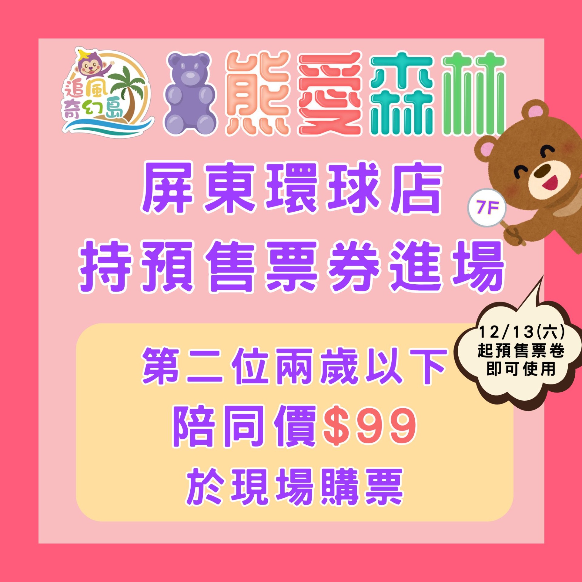 屏東環球店 - 熊愛森林 持預售票券進場,第二位兩歲以下陪同價$99!